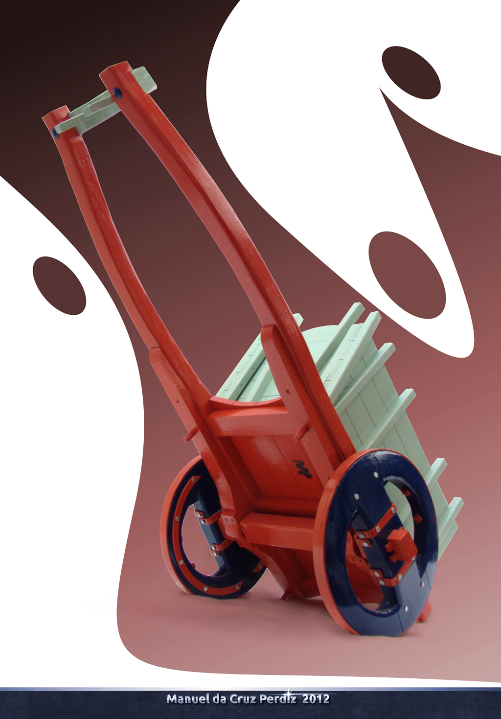 Carroça construída em madeira com adornos em aço;